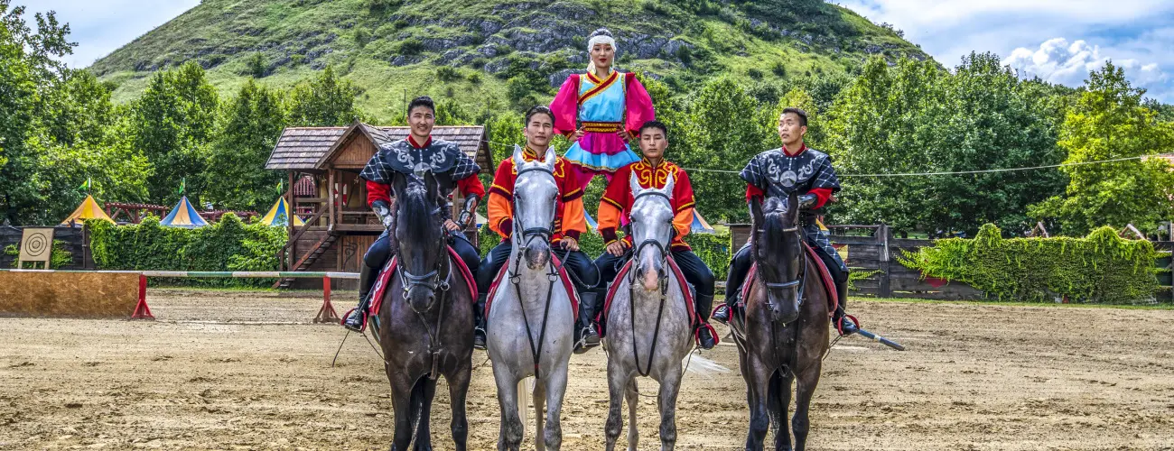 Történelmi lovasjátékok előadás szorosan kapcsolódó fakultatív szolgáltatás, a Fenséges Középkori Lakoma a Várkapitány Úr Nagy Lovagtermében, vagy a Várcsárdában.