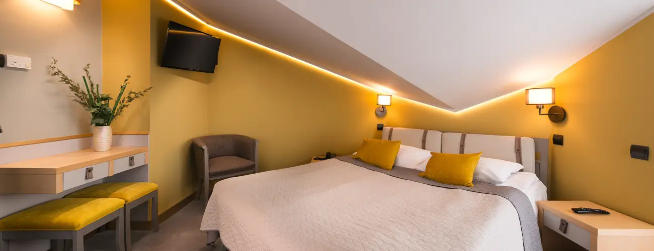 Visegrád központjában, nyugodt környezetben 95 szobával áll rendelkezésre a szálloda. A szobák lifttel megközelíthetőek, többségük mind franciaágyas, mind külön ágyas elhelyezést is lehetővé tesz, mindegyik szobához erkély vagy franciaerkély is tartozik.