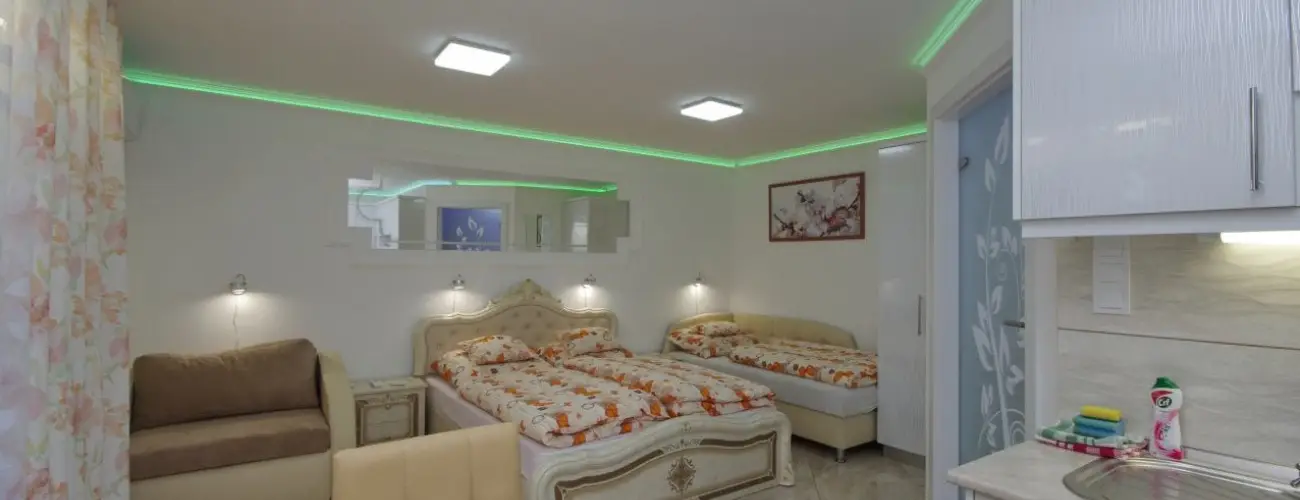 Szálláshelyük a Várfürdő vonzáskörzetében, csendes utcában található. Teljesen újonnan épült udvarra nyíló klimatizált és akadálymentesített Deluxe besorolású stúdió apartman. Kiemelkedő minőségű berendezéssel van felszerelve. Jól felszerelt konyha sarok is tartozik hozzá. A hűtőszekrény fagyasztó résszel ellátott. Az udvaron grillezési, szalonna sütési és bográcsozási lehetőség van, melyhez zárt és őrzött, kamerákkal felszerelt parkoló is tartozik. A szállásra kisállat nem vihető be. Dohányzás az apartman előtti udvari kijelölt dohányzó sarokban lehetséges. Az utcai kapuk elektromos távirányítóval működnek. Amennyiben autóval közlekednek, ez is az Önök kényelmét szolgálja, mert parkolás esetén nem kell az utcán kiszállni. A szálláshelytől 300 méterre találhatóak a horgász tavak. A fűtést szabályozható gáz konvektor szolgáltatja. Az év minden napján várják kedves vendégeiket.